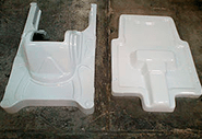 Las partes para equipos odontológicos como porta escupidera, módulos odontológicos, espaldares y asientos para sillas, tendido para cama hospitalaria, cubiertas para mesa puente o mesa de noche son fabricadas en resinas termoformadas logrando mejores acabados y una asepsia más duradera.